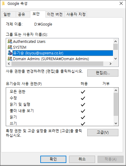 5. 저와 같은 경우 D:\에 경로를 지정하다보니 OST를 생성할 권한이 없다고 나와 아래와 같이 폴더 보안 권한설정에 Full 권한을 추가하였습니다.