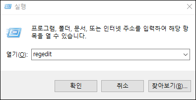 1. 실행 > regedit를 입력합니다.