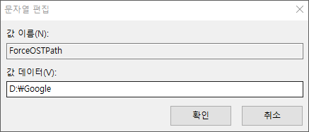 4. 값이름에 ForceOSTPath, ForcePSTPath를 입력 후 경로를 입력합니다.